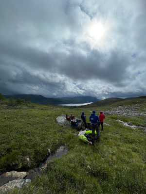 Tagsüber werden wir zusammen in der Gruppe laufen. Um Equipment (Kocher, Zelt, Tarp usw.) sinnvoll aufzuteilen und um geeignetere Zeltplätze zu finden, macht es Sinn, dass wir uns (für nachts) in Zweiergruppen aufteilen.