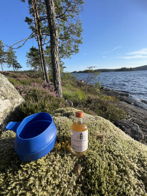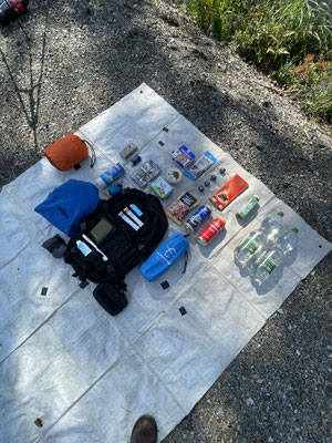 Wir können aus allen Bächen trinken und brauchen deshalb keine größeren Mengen an Trinkwasser mitnehmen. Ich nehme zwei 1,5l PET-Pfandflaschen als Wasserflaschen mit. Dazu nutze ich gerne meine Falttasse, um zwischendurch schnell etwas trinken zu können.